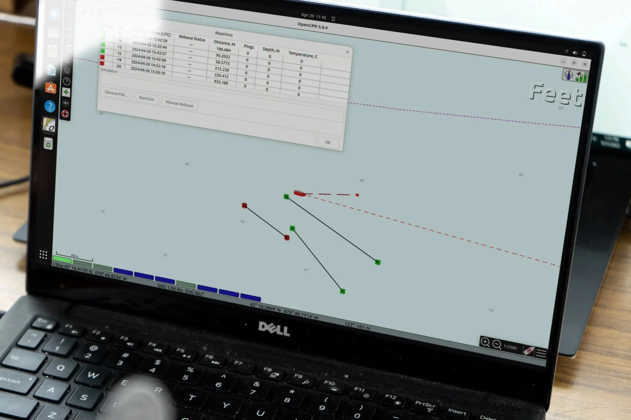Measuring the position of all gear on the sea floor in latitude and longitude